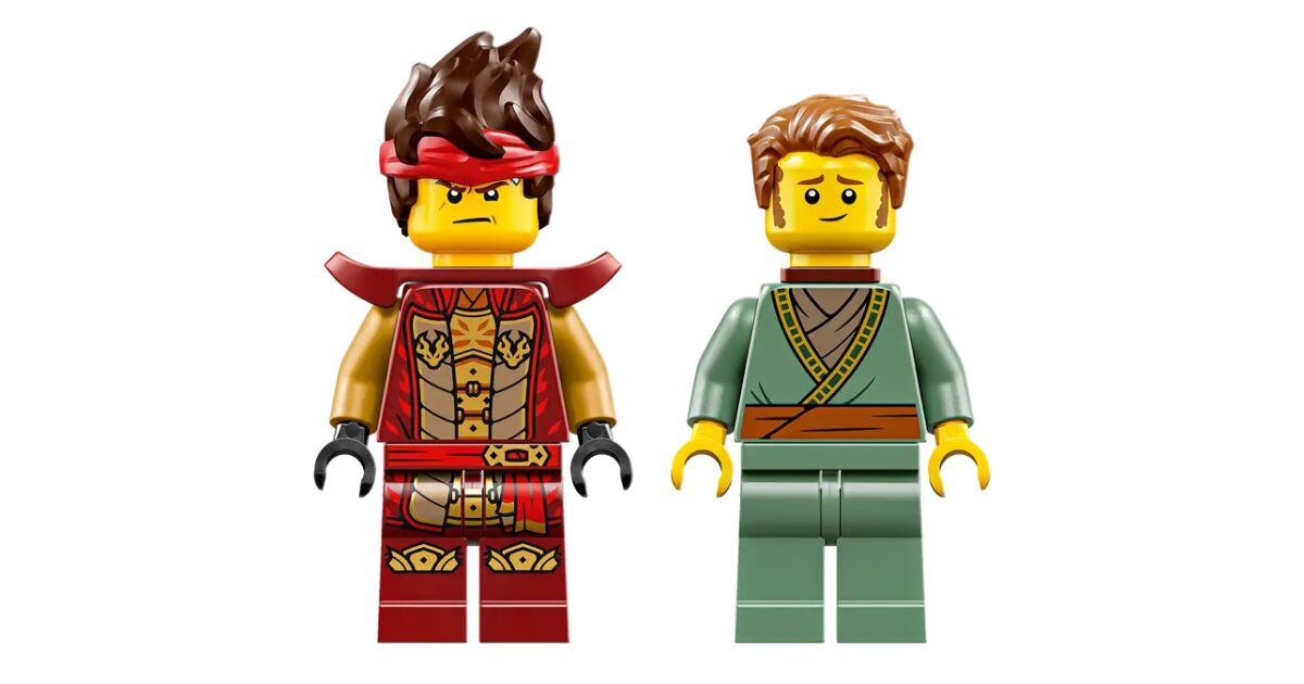 - 2 minifigurine NINJAGO®: Ninja Kai cu o sabie magică și un pescar într-o barcă.