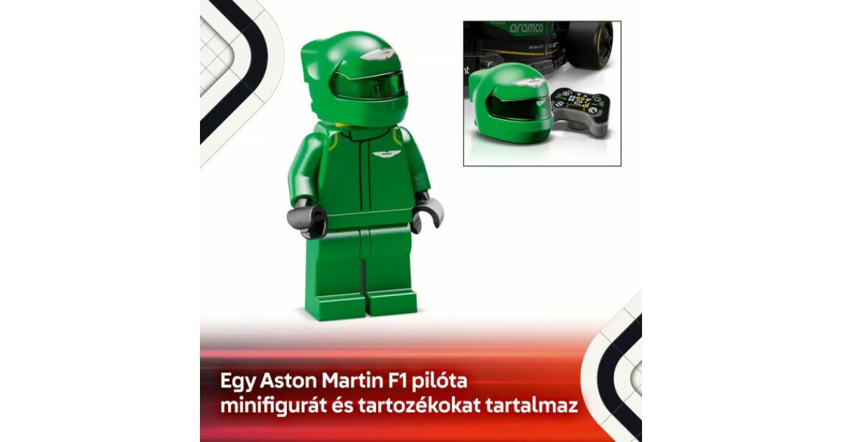 - O minifigurină pilot în costumul de curse Aston Martin Aramco F1® și cască cu aripă 🧑🚀