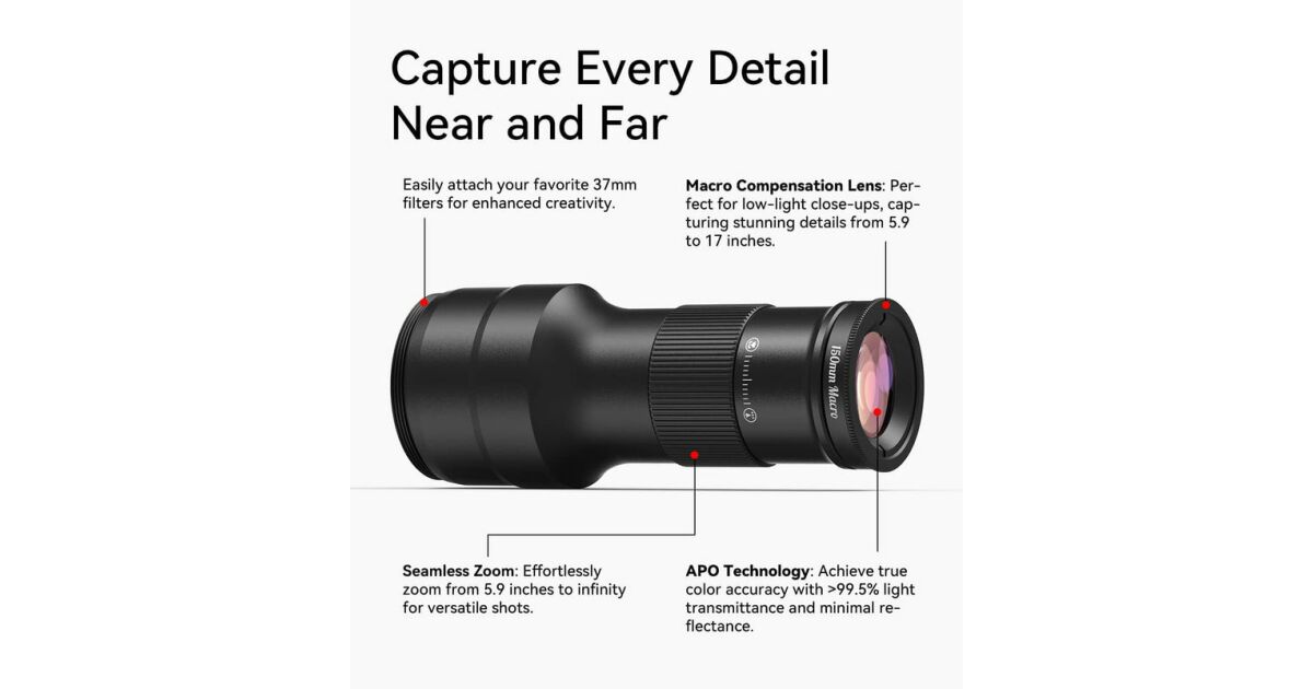 Transformați fiecare fotografie într-o capodoperă cu Apexel APL-TM6, teleobiectivul de înaltă calitate conceput pentru pasionații de fotografie mobilă. Perfect pentru imortalizarea momentelor speciale, fie că sunt peisaje, portrete sau subiecte îndepărtate, acest accesoriu vă duce fotografia la un nivel superior.