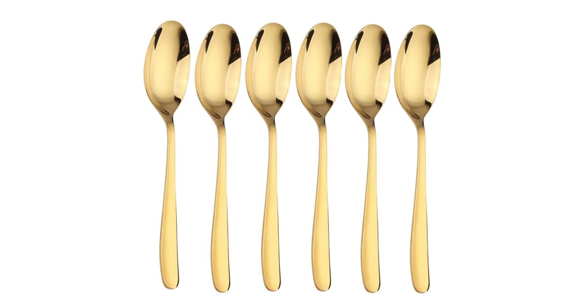 Set 6 linguri Pufo Simple pentru cafea, ceai, desert, otel inoxidabil, auriu, 20 cm Descriere