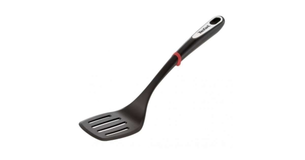 Spatula cu fante Tefal Ingenio, termorezistenta, maner robust, inel de protectie, negru/rosu Descriere