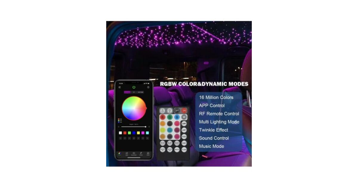 Creează atmosfera perfectă cu acest controller LED RGBW de 16W, care are efecte sclipitoare și control prin aplicație mobilă. Este ideal pentru plafonul înstelat al mașinii tale, pentru iluminatul decorativ acasă sau pentru proiecte unice de iluminat ambiental.
