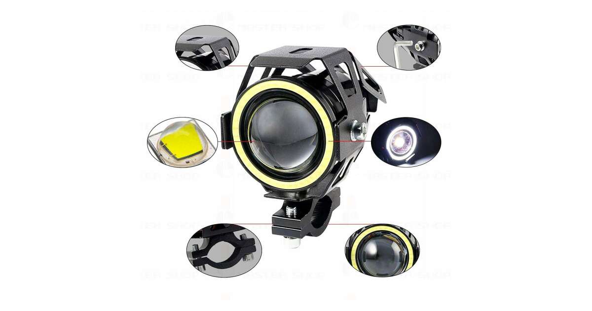Proiector LED cu Lupa, Angel Eye ALB si Devil Eye RED, alimentare 12V, pentru Off-Road, ATV, SSV, UTV