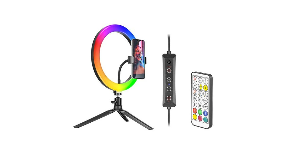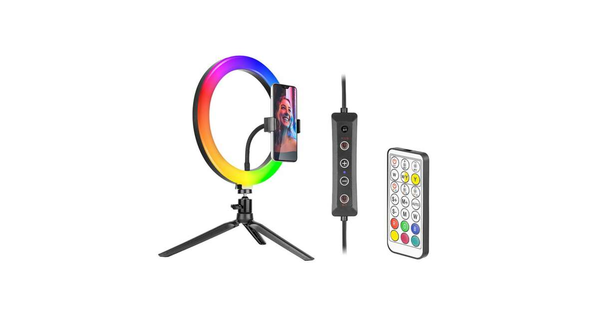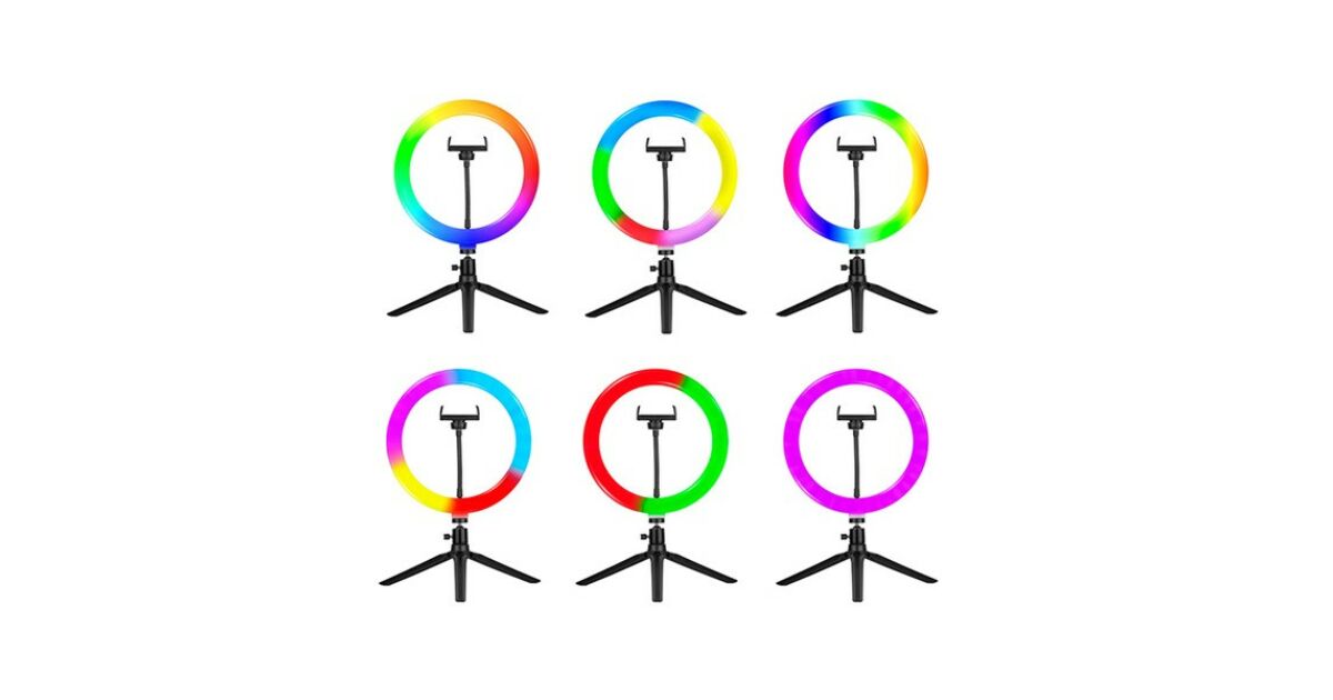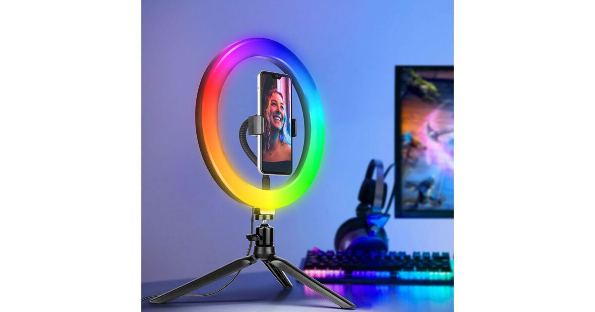 Acest inel luminos LED RGB Tracer este alegerea perfectă pentru portrete, vlogging, machiaj și selfie-uri. LED-urile încorporate oferă o lumină uniformă și naturală, astfel încât vei arăta întotdeauna perfect în fotografii și videoclipuri. 📱📸