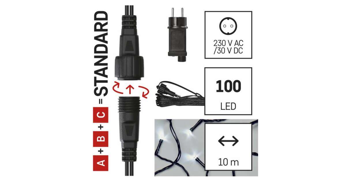 Ghirlandă LED Emos de 10 metri pentru exterior/interior - 100 LED, lumină alb rece ✨