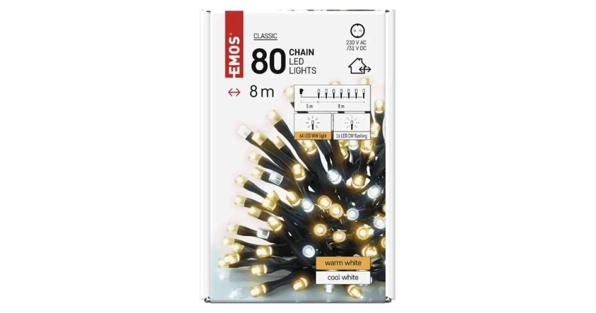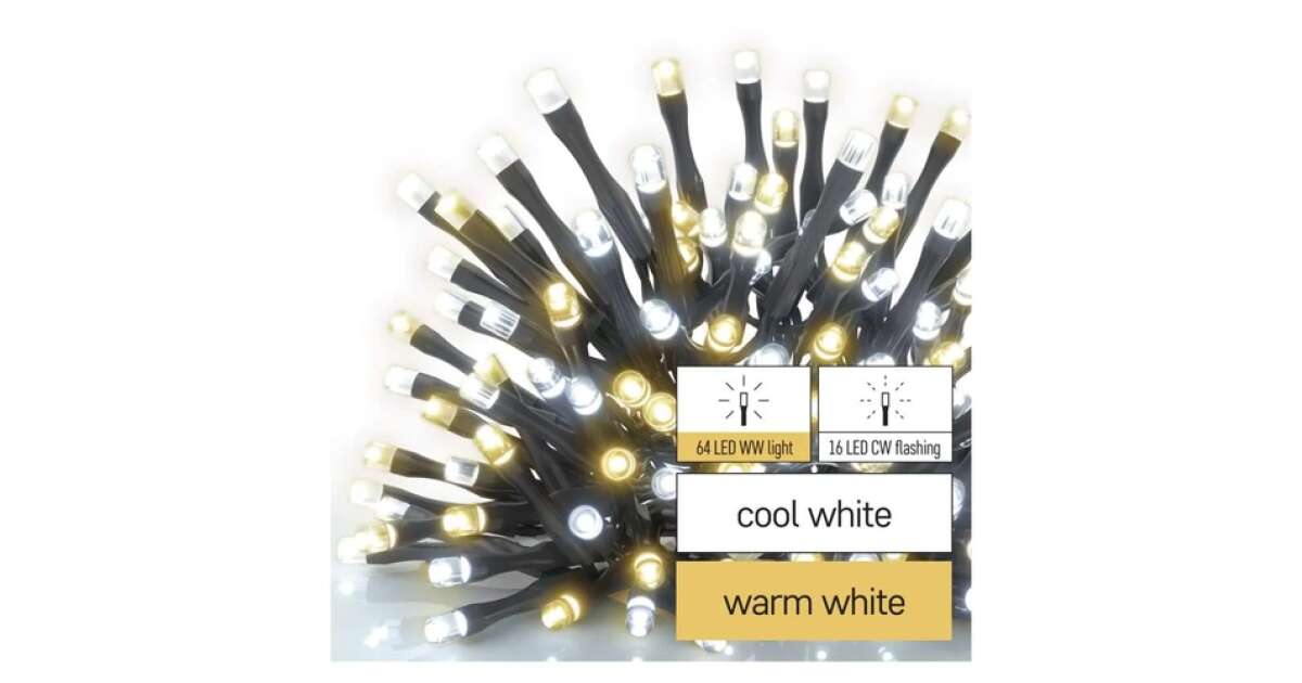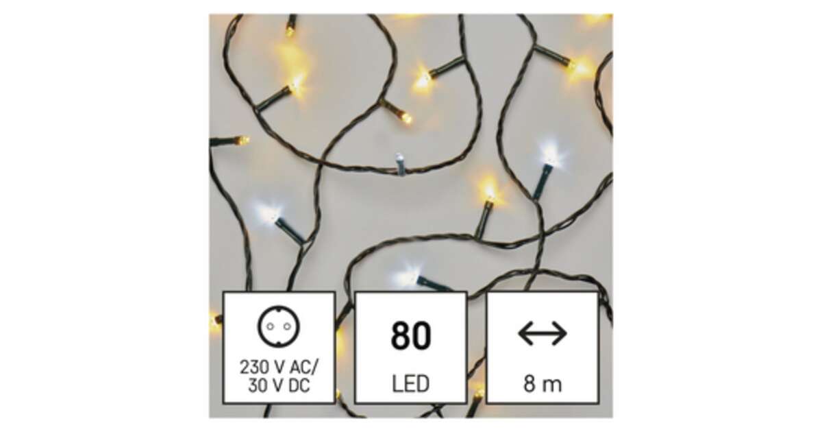Crăciun în interior / exterior 80pcs LED lumini cu LED-uri, intermitent, timer, cald și rece alb 8m + 5m Descriere