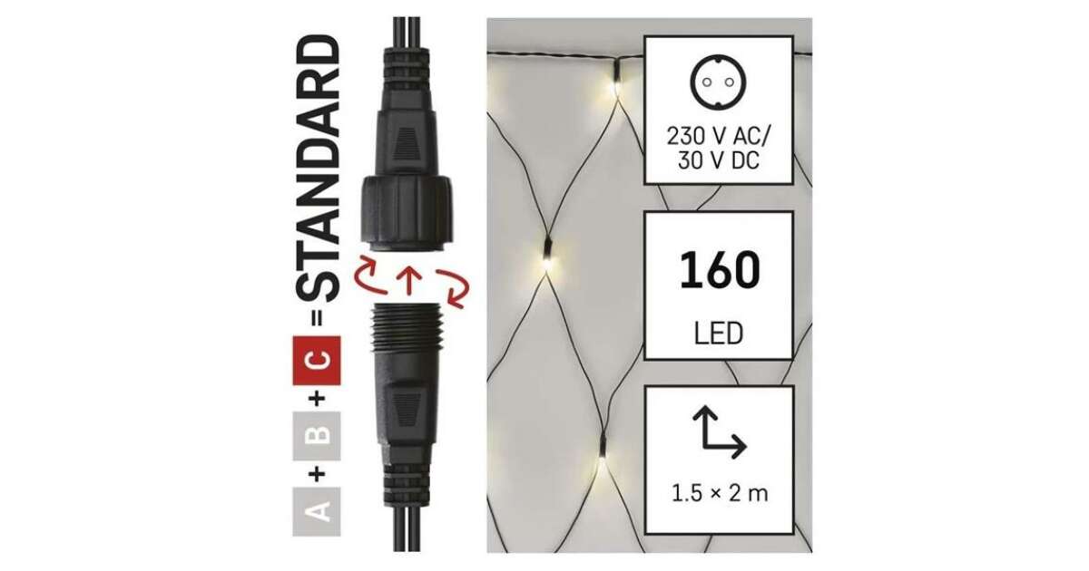 Emos D1DW01 1,5x2 m în aer liber alb cald Standard LED sortabil Crăciun ghirlanda net Descriere