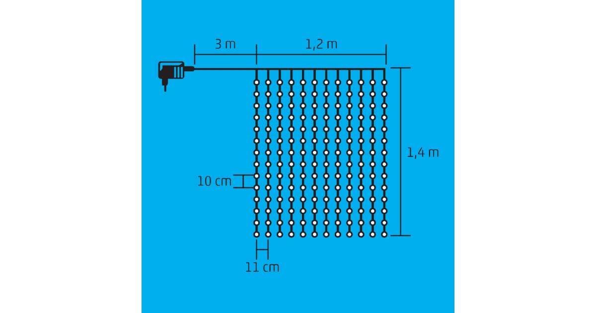 Home Perdea luminoasă LED KIN 168C/WH, 1,2x1,4 m / 168 LED-uri alb rece, fir alb, lumină constantă, adaptor de rețea, design interior Descriere