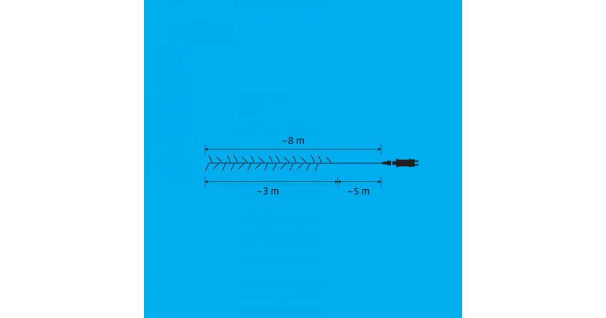 - 8 metri lungime (3 metri ghirlandă + 5 metri cablu)