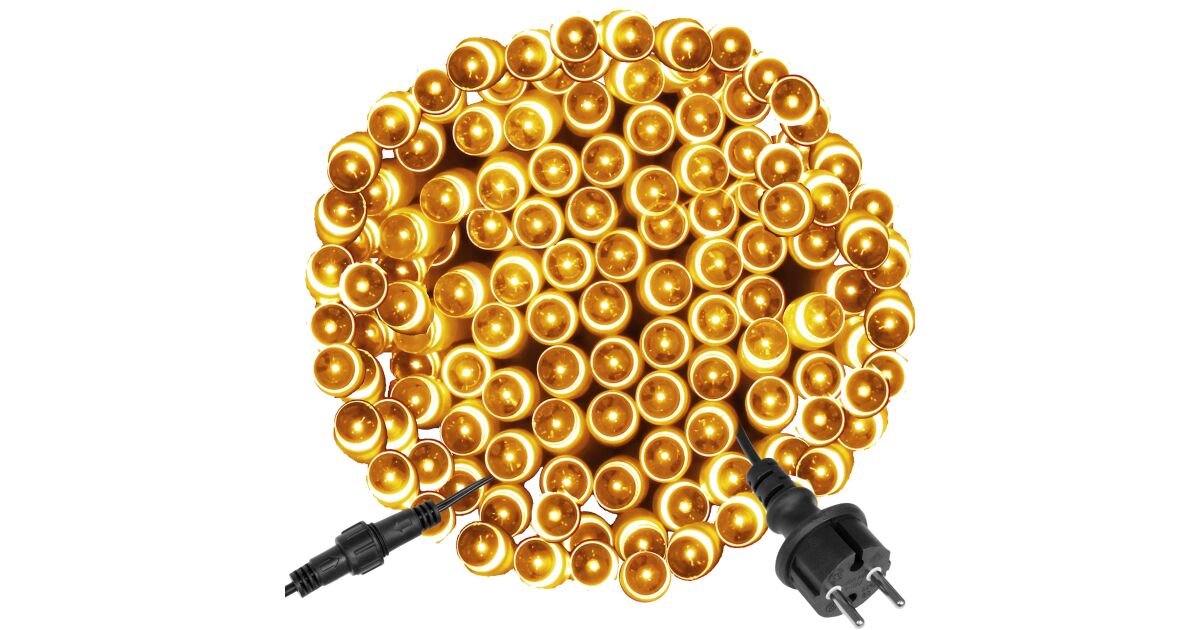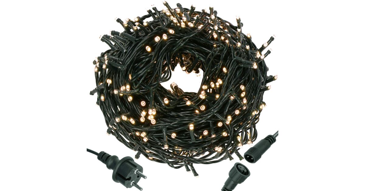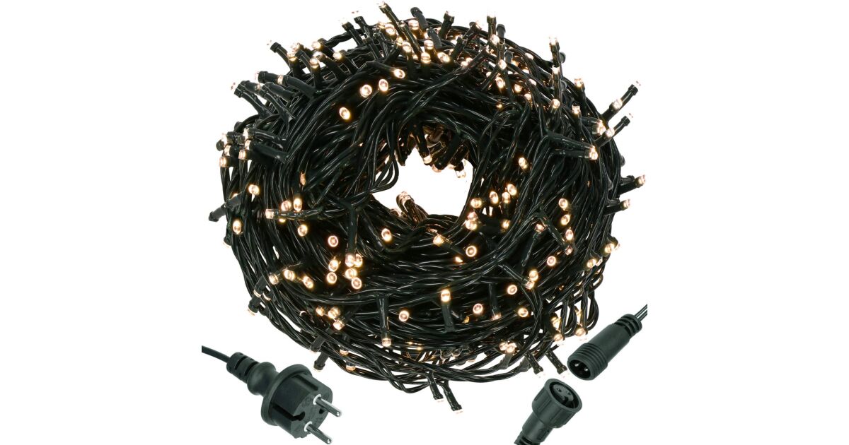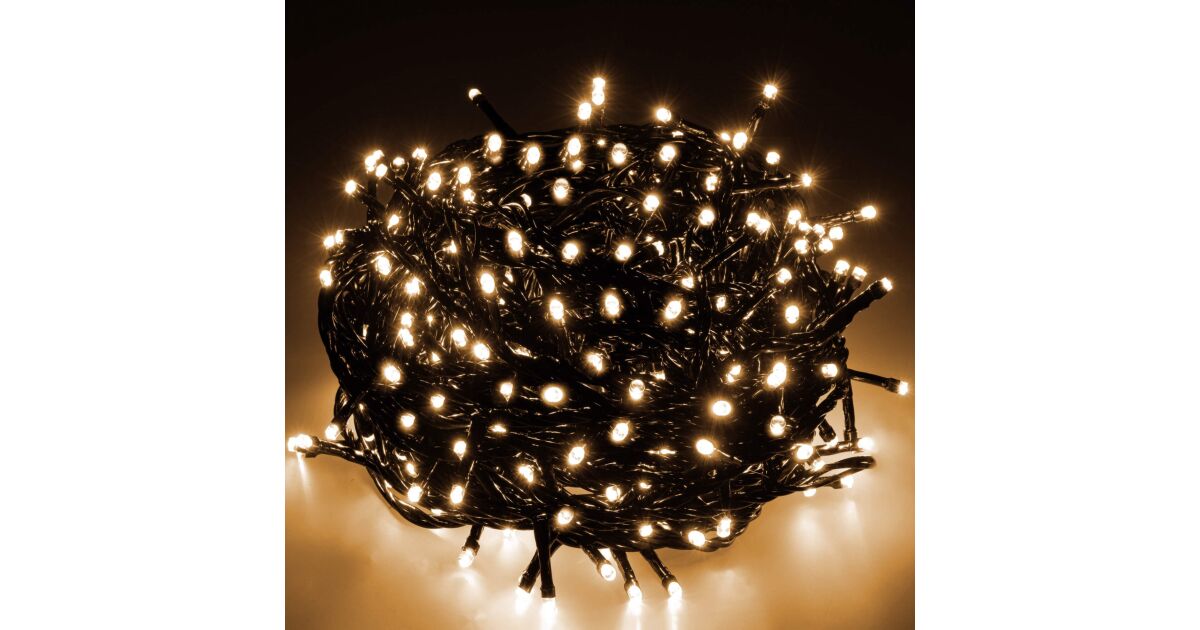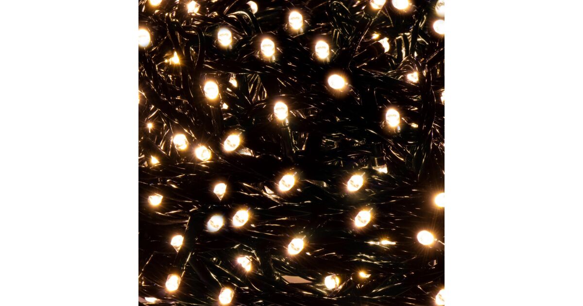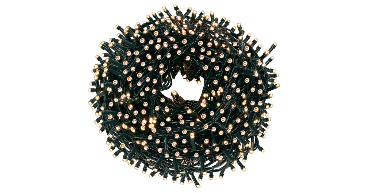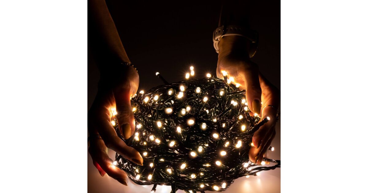 Creează o atmosferă magică de Crăciun în casă și în grădină cu această ghirlandă luminoasă de 60 de metri lungime, cu 1000 de LED-uri albe calde. Datorită protecției IP44, poate fi folosită atât în interior, cât și în exterior.