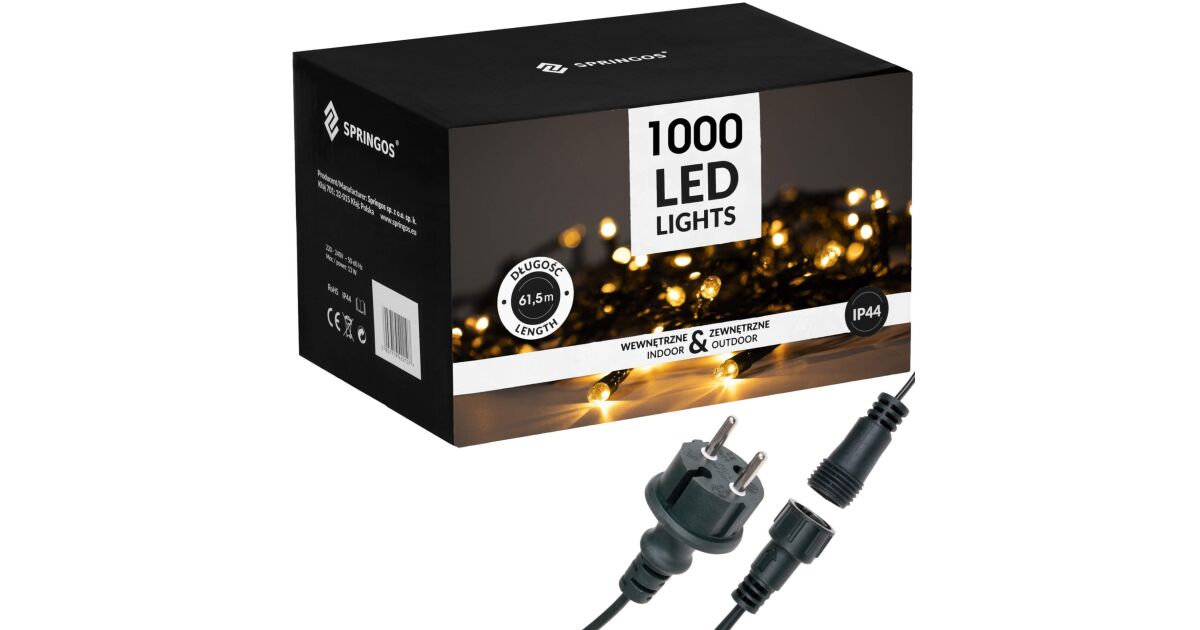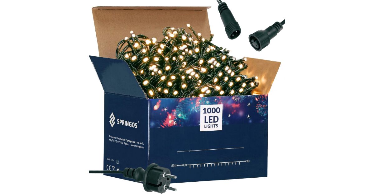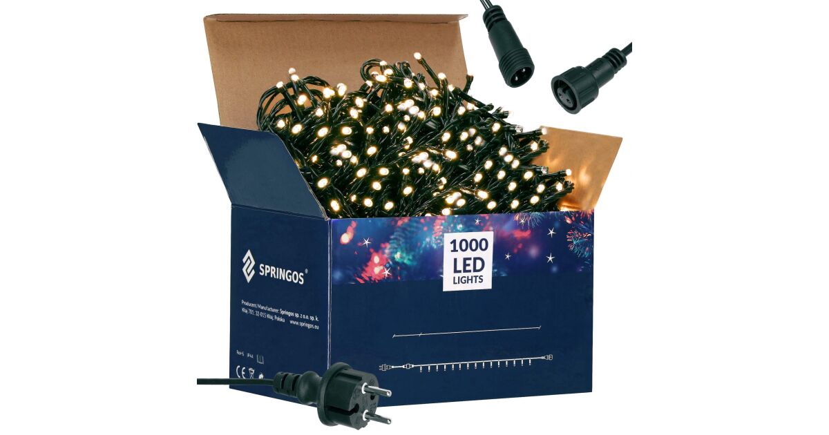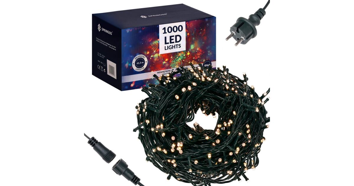 Springos Bandă LED Crăciun: 1000 LED, 60 metri, Alb Cald ✨