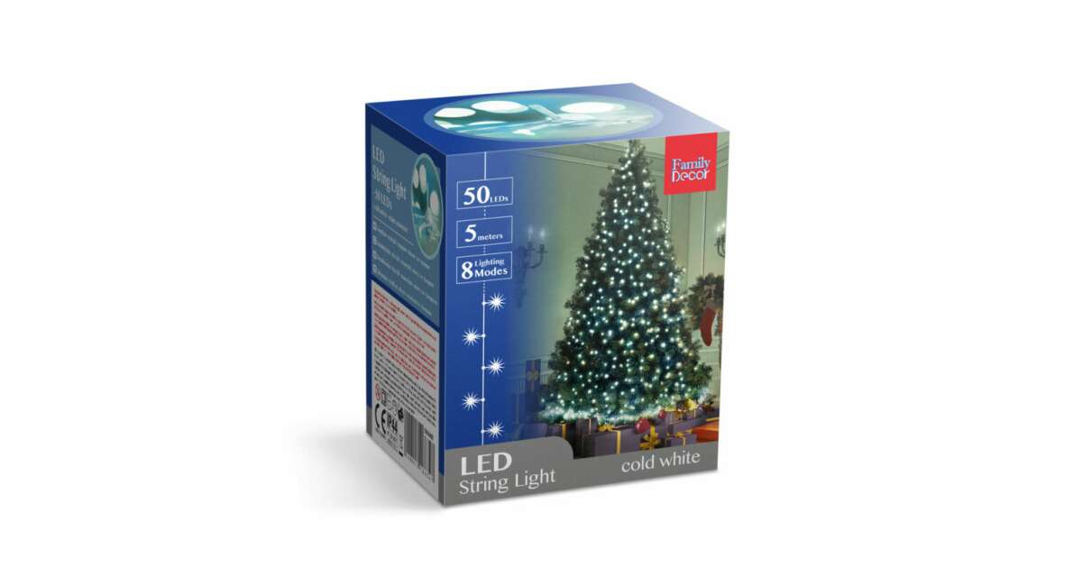 Decorează-ți casa cu această ghirlandă luminoasă de 5 metri, cu 50 de LED-uri alb rece! Are 8 programe de iluminare diferite, astfel încât poți crea cu ușurință atmosfera dorită. Perfectă pentru decorarea festivă a pomilor de Crăciun, a locuințelor, a teraselor și a altor încăperi. ✨