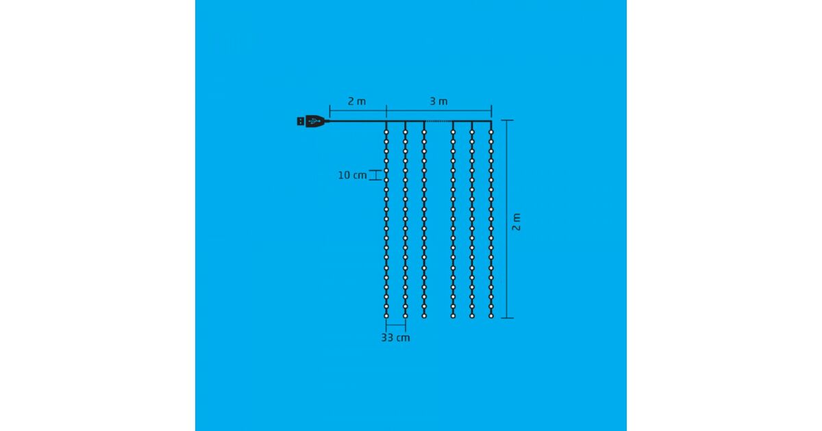 -Home MLF 200/WH micro LED perdea luminoasă, 3x2 m / 200 micro LED-uri alb rece, 8 programe de lumină, telecomandă, conexiune USB, design interior