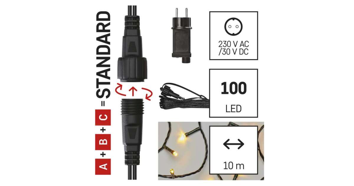 EMOS Set de bază pentru șiruri de lumini conectate, standard, 10 m, exterior, alb cald, temporizator Descriere