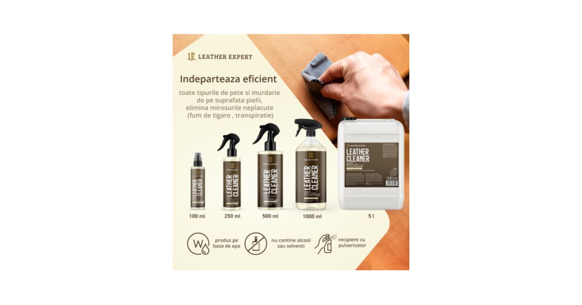 Soluția de curățare pentru piele Leather Expert este un detergent pe bază de apă, de calitate profesională, care îndepărtează eficient murdăria și petele de pe suprafețele din piele. Este o alegere ideală pentru scaune auto, mobilier, încălțăminte și alte accesorii din piele.