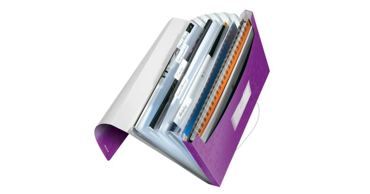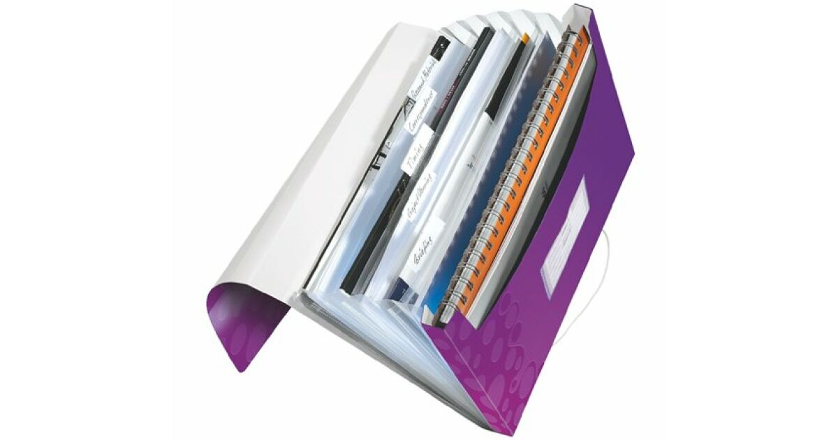 Dosar acordeon LEITZ, A4, PP, 6 compartimente, LEITZ Wow, violet (45890062) Descriere