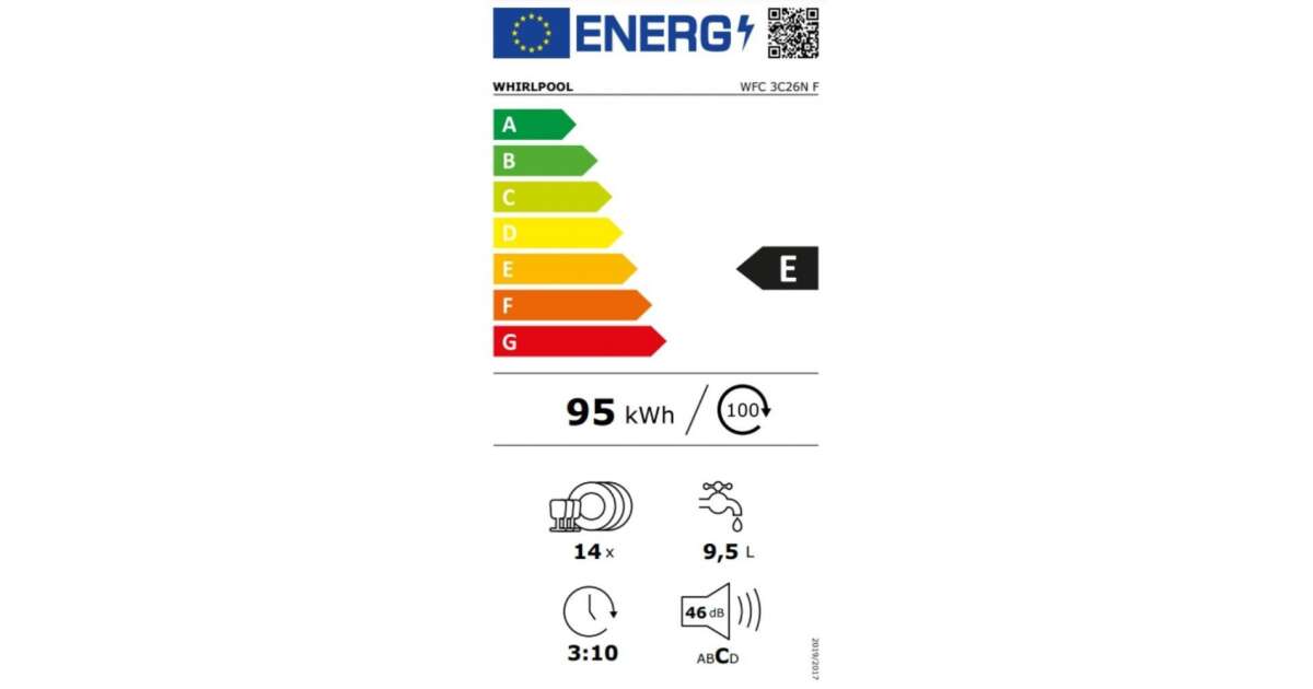 Whirlpool WFC 3C26N F De sine stătător 14 seturi farfurii E (WFC 3C26 NF) Descriere