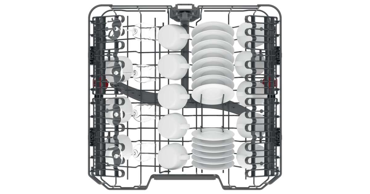 - Coș superior reglabil pe înălțime: așezare flexibilă a farfuriilor și paharelor.