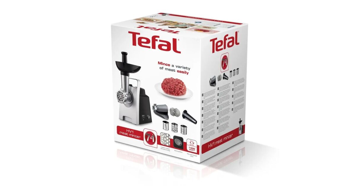 Месомелачка, Tefal NE109838, HV1 7IN 1, 1400W, 1.7kg/min, coulis, 2 grids, shredder 3 drums, handle Descriere