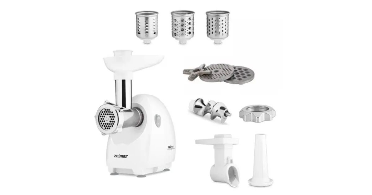 Masina de tocat carne Zelmer ZMM4045B, 1900 W, 1,7 kg capacitate de tocare pe minut, functionare silentioasa, 2 discuri din otel inoxidabil, capat pentru razuire cu set de 3 accesorii, accesoriu pentru preparare carnati (ZMM4045B)