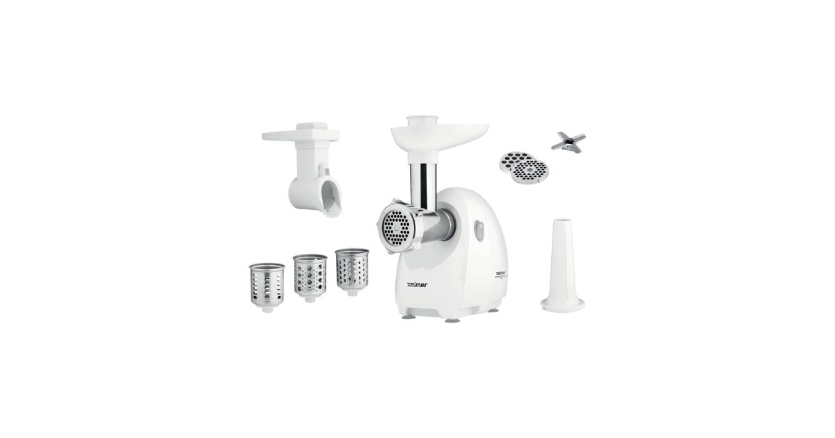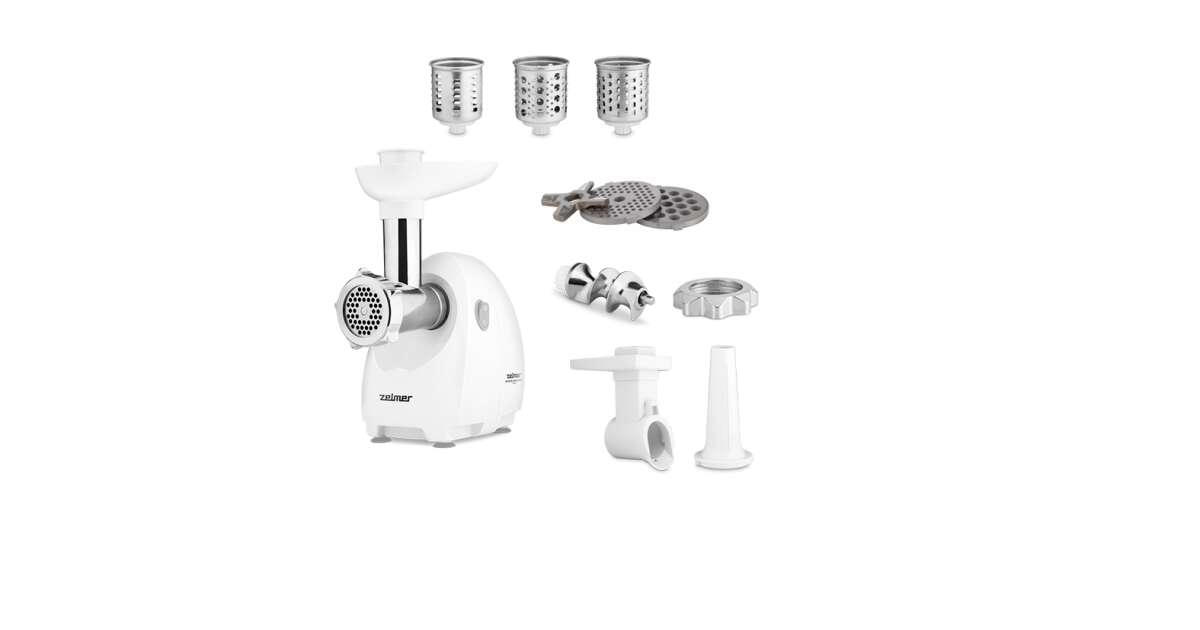 Masina de tocat carne Zelmer ZMM4045B, 1900 W, 1,7 kg capacitate de tocare pe minut, functionare silentioasa, 2 discuri din otel inoxidabil, capat pentru razuire cu set de 3 accesorii, accesoriu pentru preparare carnati (ZMM4045B) Descriere