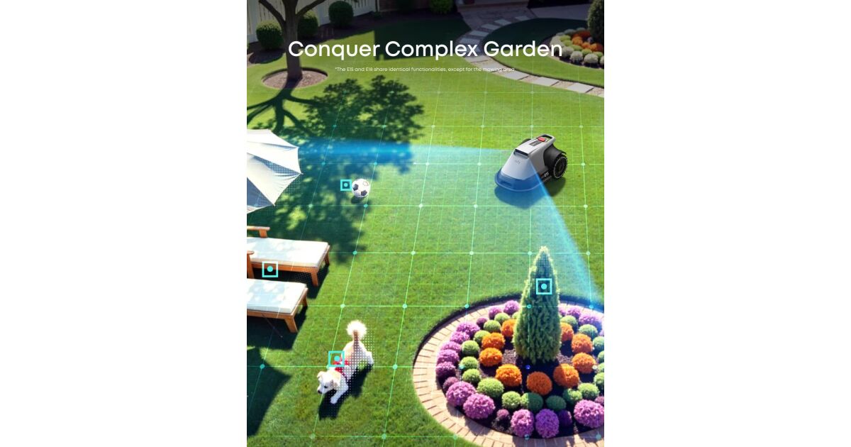 - Cartografiere automată: E15 cartografiază grădina și planifică traseul de tuns iarba. 🗺️
