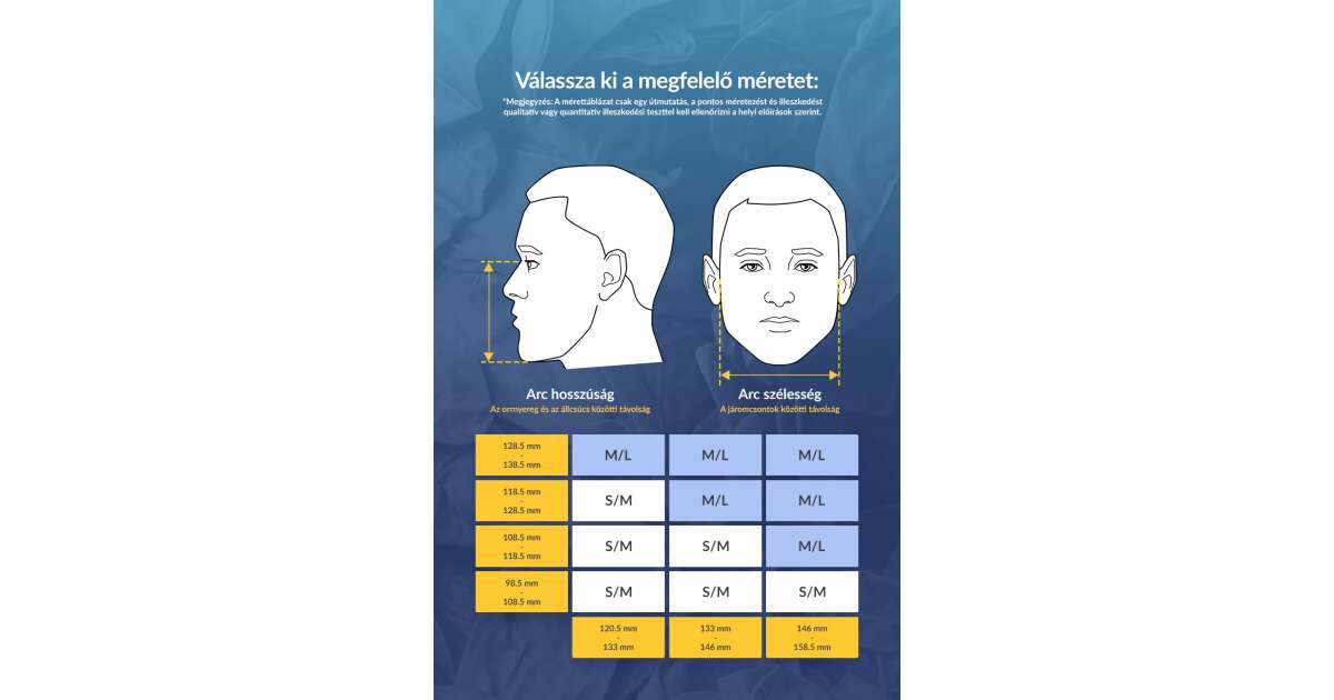 - Mărime reglabilă: Alegeți mărimea potrivită pentru fața dvs. cu ajutorul tabelului inclus. (vezi imaginile)