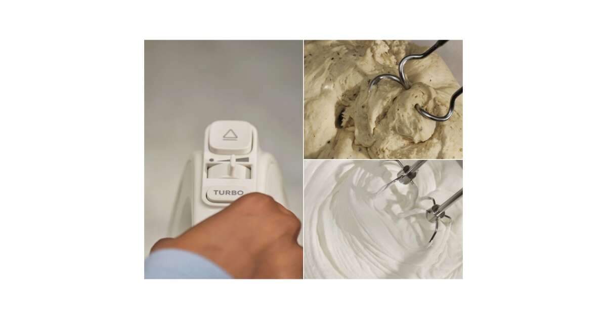 Mixer de mana Electrolux EHM4W, 500W, 5 viteze + Turbo, suport pentru mixer si accesorii, alb Descriere