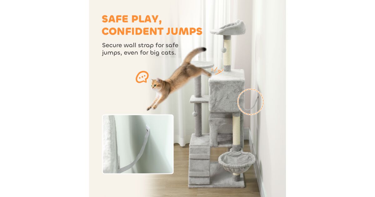 - Design stabil: Baza ranforsată și cureaua anti-basculare garantează siguranța, chiar și pentru mai multe pisici. 💪