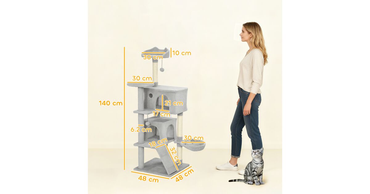- Scară: Scara (32x18 cm) permite pisicilor mai mici sau mai în vârstă să urce cu ușurință la nivelurile superioare. 🪜