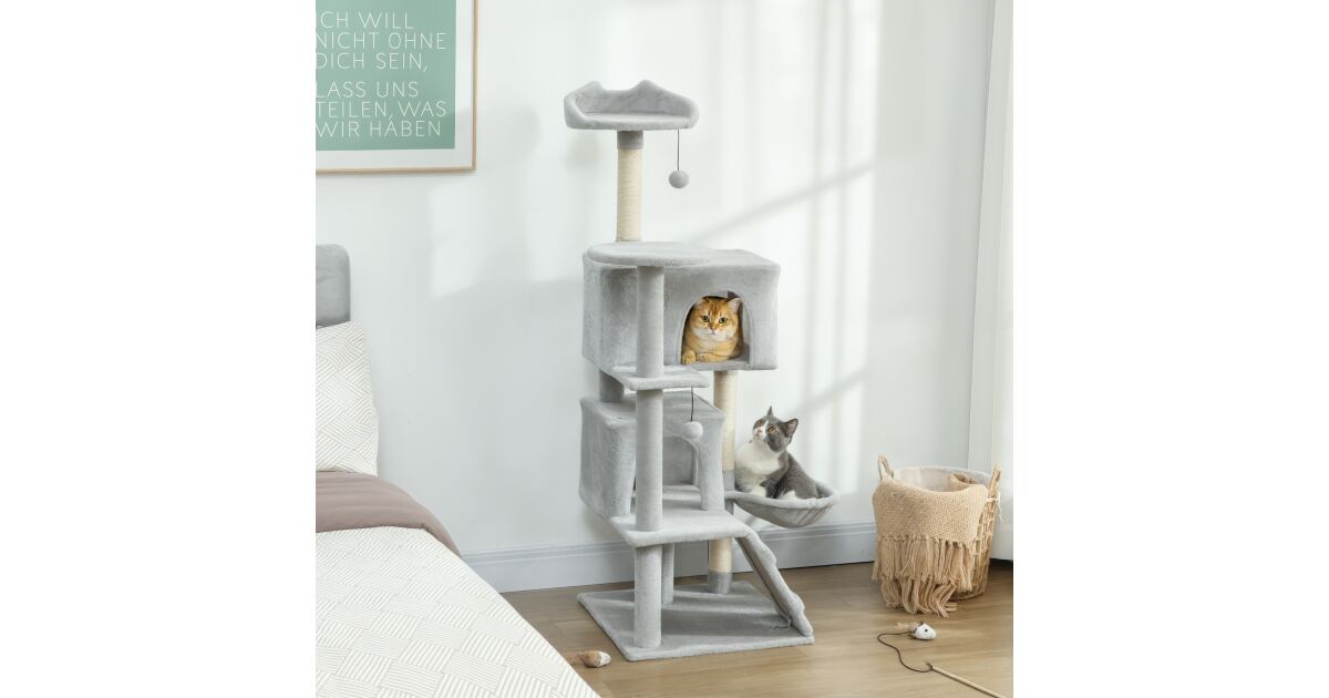 PawHut 140 cm Ansamblu pentru pisici: Stâlp de zgâriat, ascunzători și paturi moi, toate într-unul singur! 😻