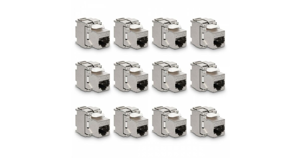 Acest set de 12 conectori kwmobile CAT6A ecranati keystone este soluția perfectă pentru a construi sau extinde rețeaua de acasă sau de la birou. Carcasa metalică asigură durabilitate și transmisie fiabilă a semnalului.