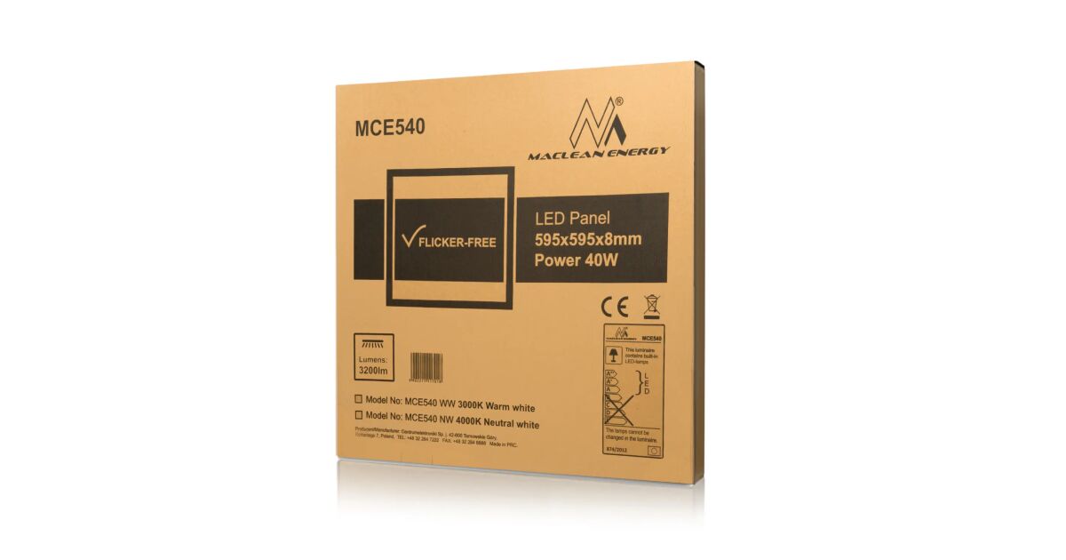 Panou LED Maclean, tavan, subțire 40W, alb cald (3000K), 595x595x8mm, raster, funcție FLICKER FREE, MCE540 Descriere