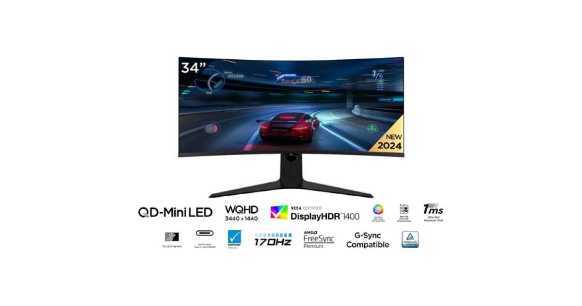 Monitor Gaming Curbat QD-Mini LED TCL 34R83Q, 34", UWQHD (3440x1440), 170Hz, 1ms, AMD FreeSync™ Premium, NVIDIA G-Sync™ Compatible, HDR1400,Ambient light, Pantone Validated, 1500R, Boxe 3W x2