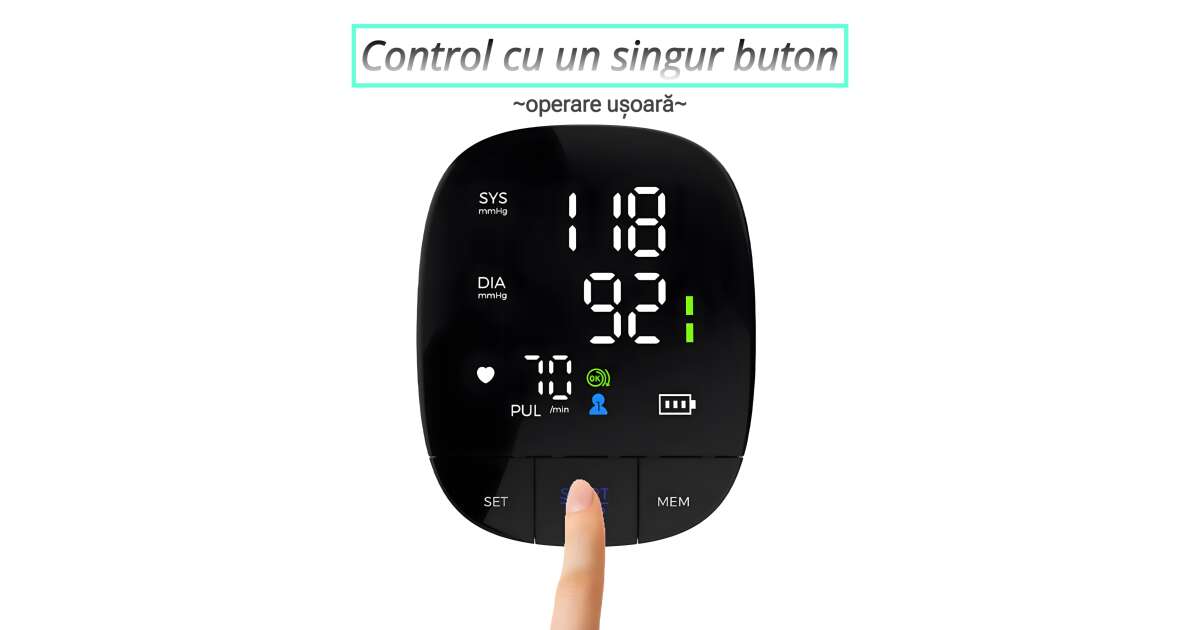 - Control cu un singur buton: Utilizare simplă și intuitivă, ușor de utilizat chiar și pentru persoanele în vârstă.