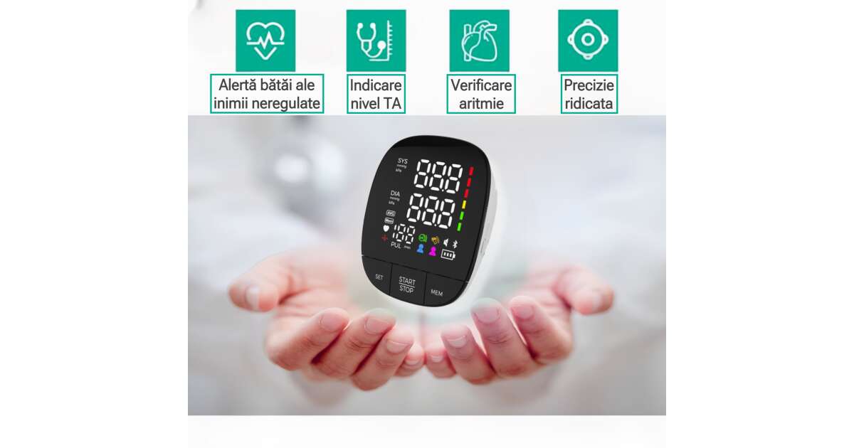 - 240 de locuri de memorie: Poți urmări cu ușurință modificările tensiunii arteriale.