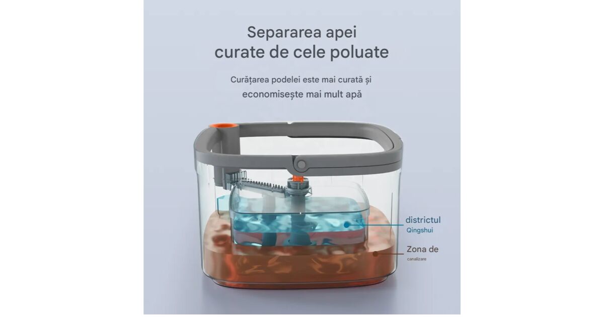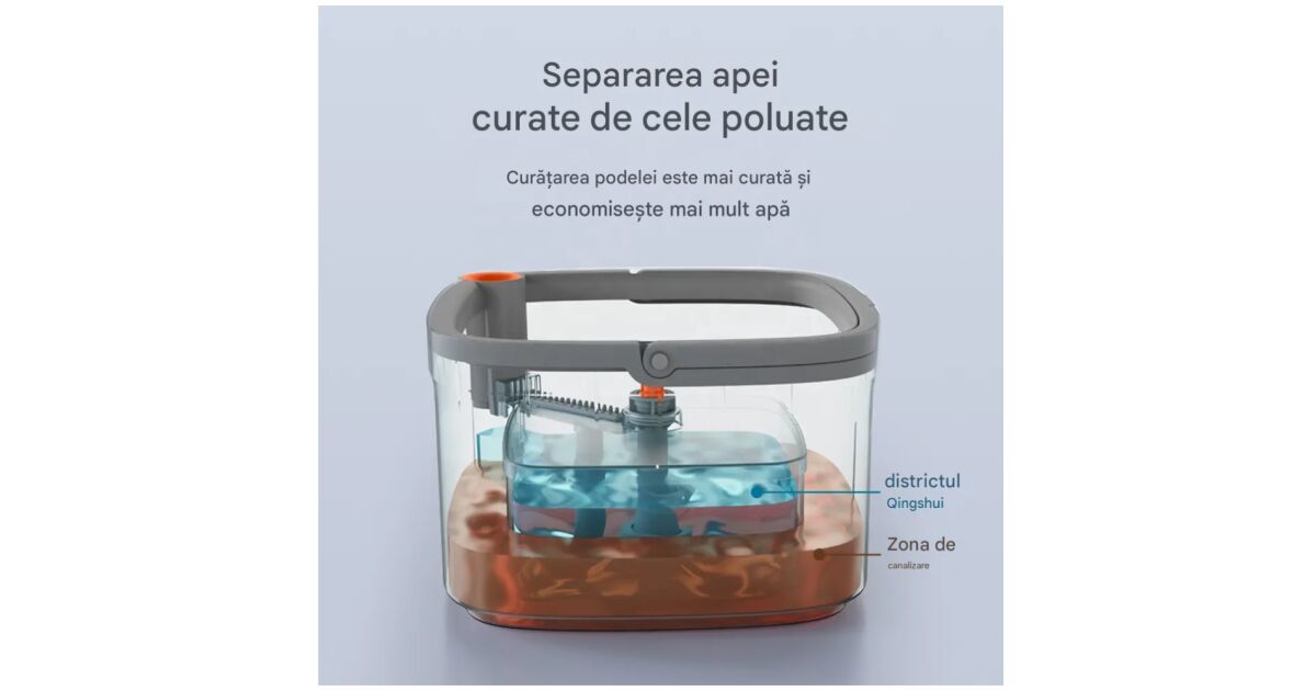 - 💧 Compartimente separate: Găleata are compartimente separate pentru apa curată și cea murdară, asigurând o curățare igienică.