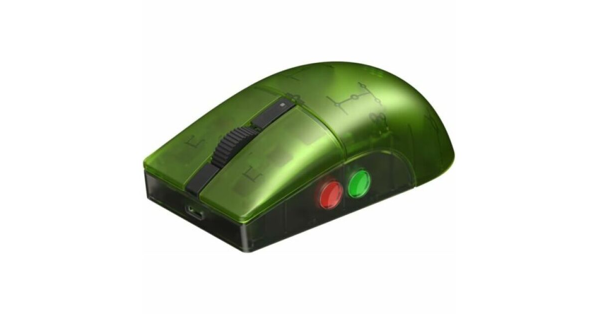 Carcasa verde transparentă a mouse-ului aduce un omagiu aspectului iconic al consolei, integrându-se elegant într-o stație de gaming retro. Designul său simetric ambidextru permite jocul atât cu mâna dreaptă, cât și cu cea stângă; Forma sa este adaptată în mod special stilurilor „claw grip” și „fingertip grip”, astfel încât rămâne confortabil chiar și în timpul utilizării prelungite.