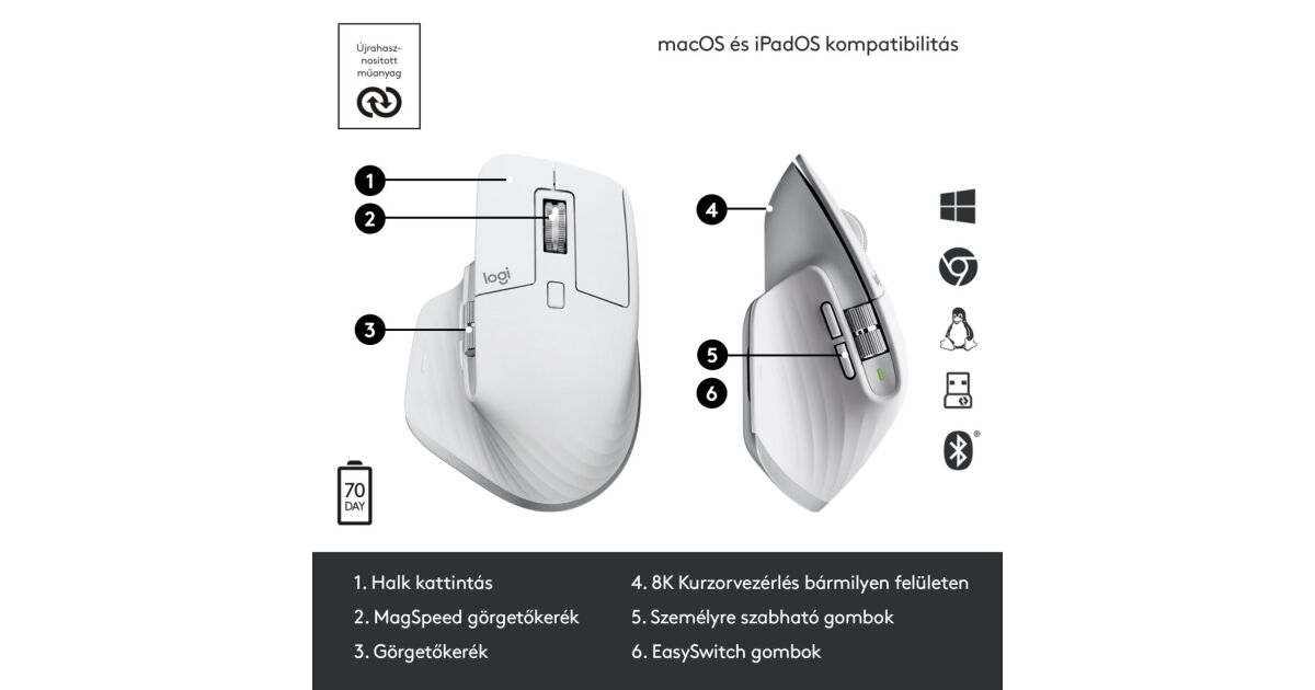 - Butoane personalizabile: Personalizează butoanele după nevoile tale cu ajutorul software-ului Logi Options+ (Windows și macOS). ⚙️