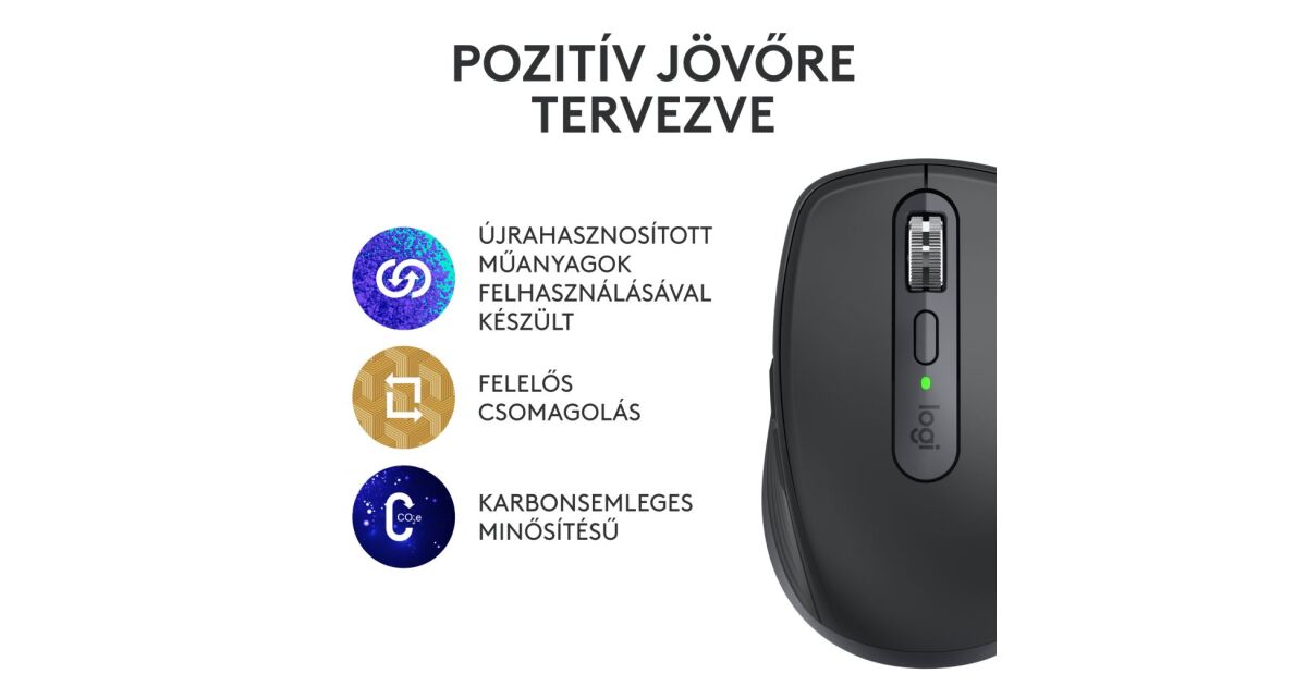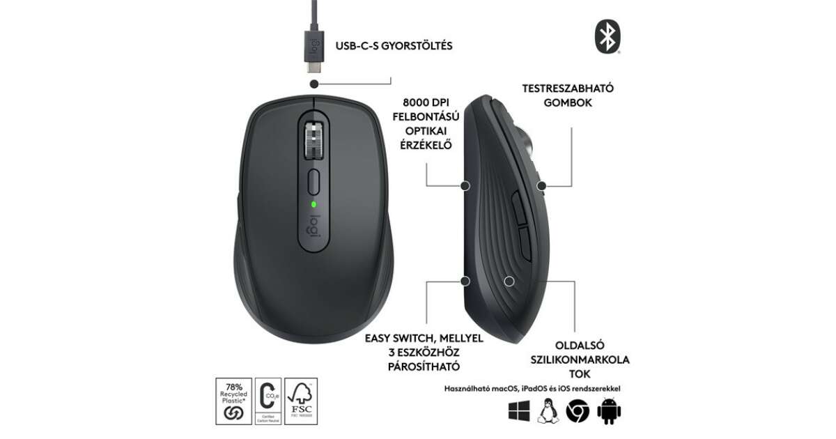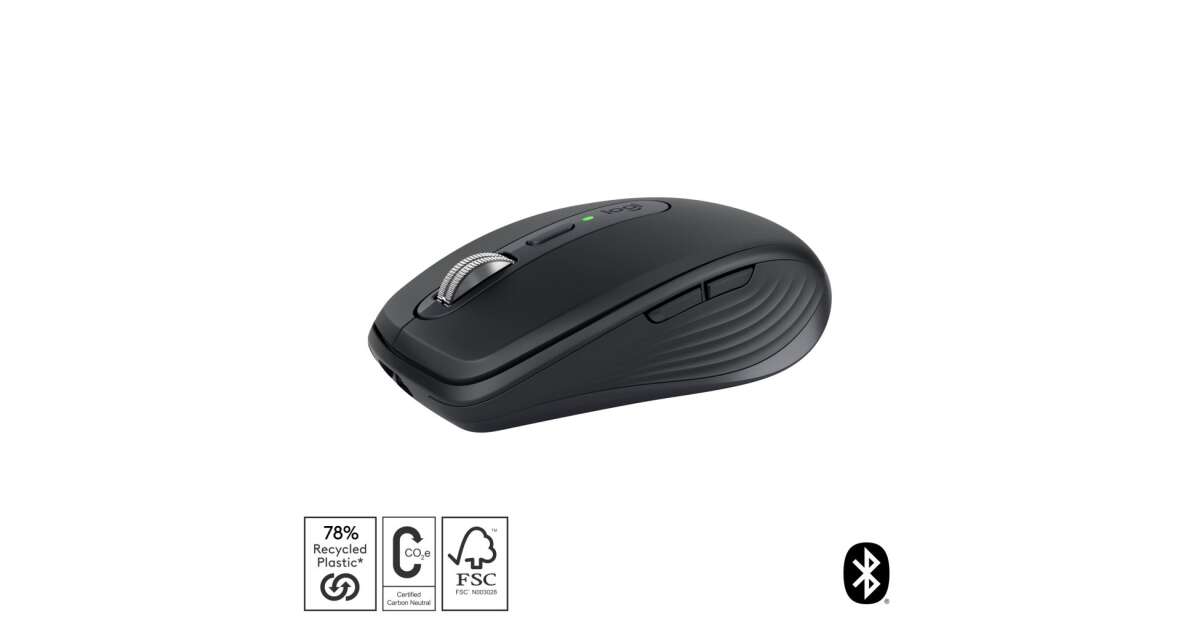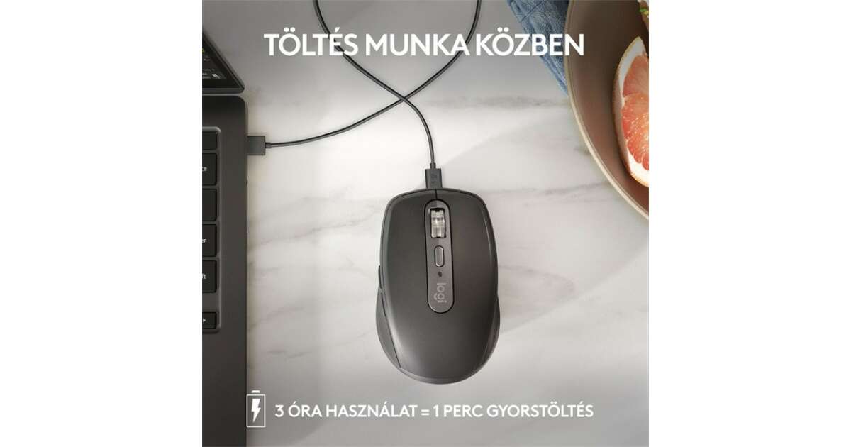Mouse wireless Logitech MX Anywhere 3S, 2.4GHz&Bluetooth, Silent, Scroll MagSpeed, Multidevice, USB-C, Negru Grafit (910-006929)