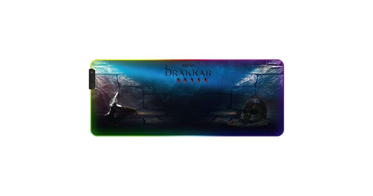 Acest mouse pad gaming KONIX Drakkar Hetland XL este alegerea perfectă pentru orice gamer care caută un mouse pad de cea mai bună calitate și de dimensiuni mari. Cu un design viking impresionant și iluminare RGB colorată, este garantat că va îmbunătăți experiența de joc.