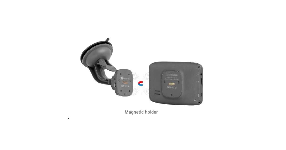 Acest dispozitiv de navigație modern, cu ecran de 5 inci, are un suport magnetic, ceea ce permite o instalare rapidă și ușoară în mașină. Încărcarea wireless oferă confort suplimentar.