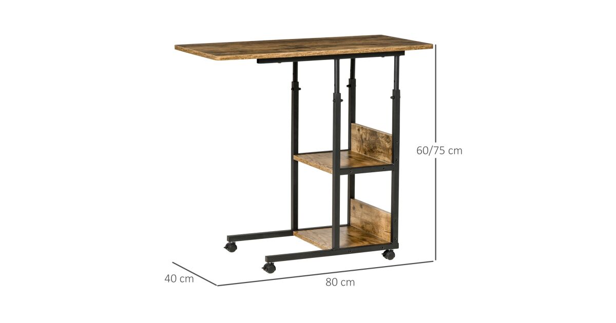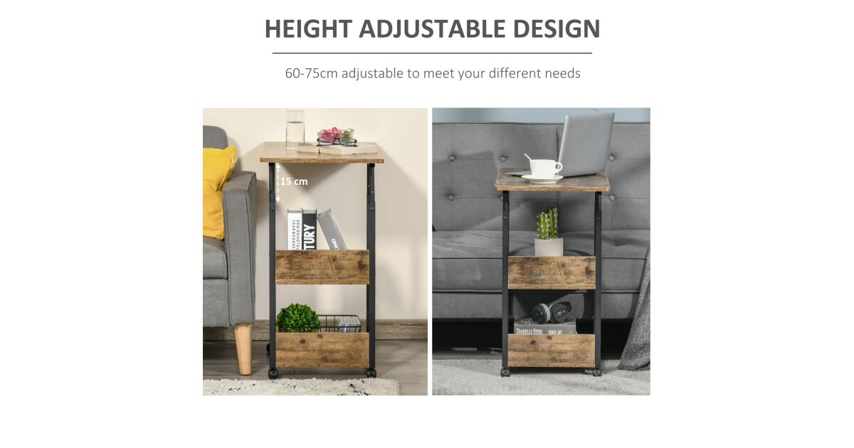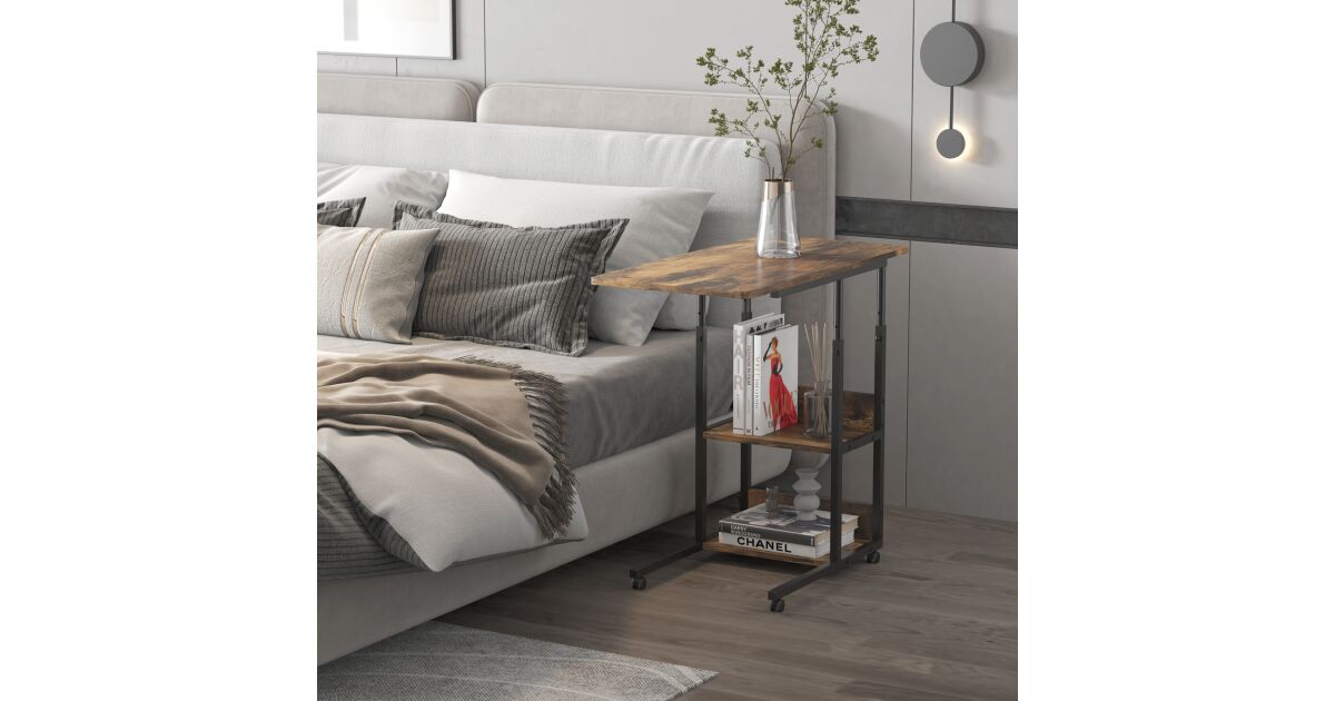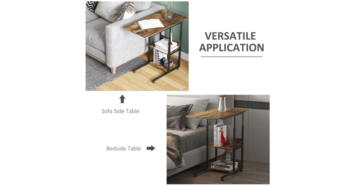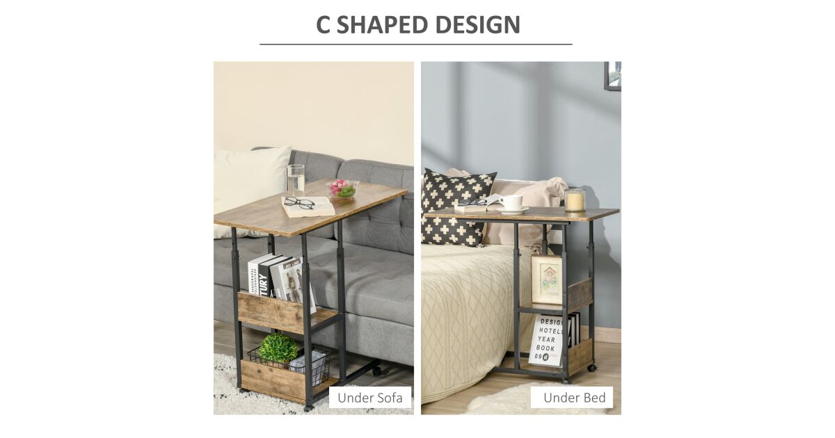 Măsuța laterală HOMCOM în formă de C, cu înălțime reglabilă și rafturi de depozitare - Perfectă pentru casa ta! 🏡