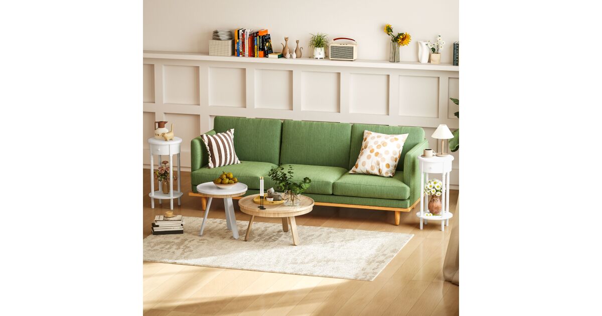 HOMCOM Set 2 Noptiere cu Sertar și Raft, Măsuțe de Cafea din Lemn în Stil Contemporan, Ø35,5x71 cm, Alb