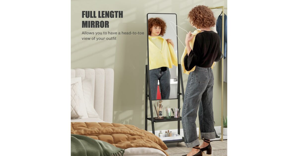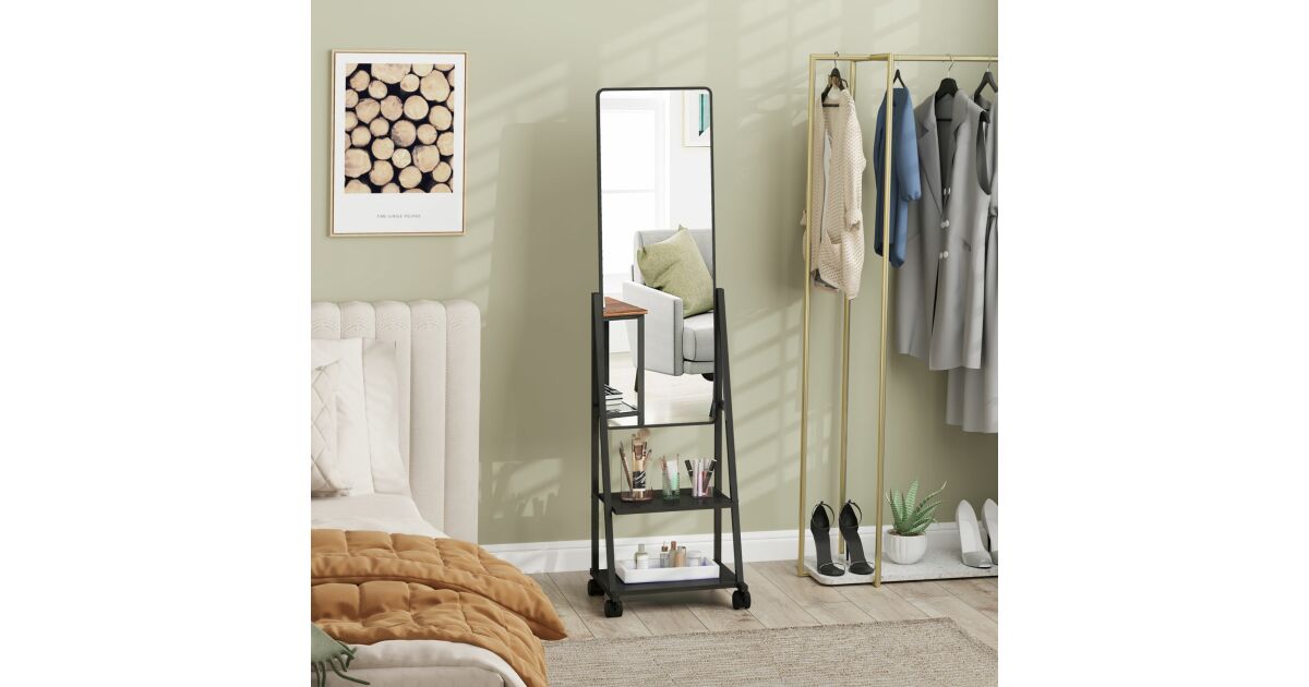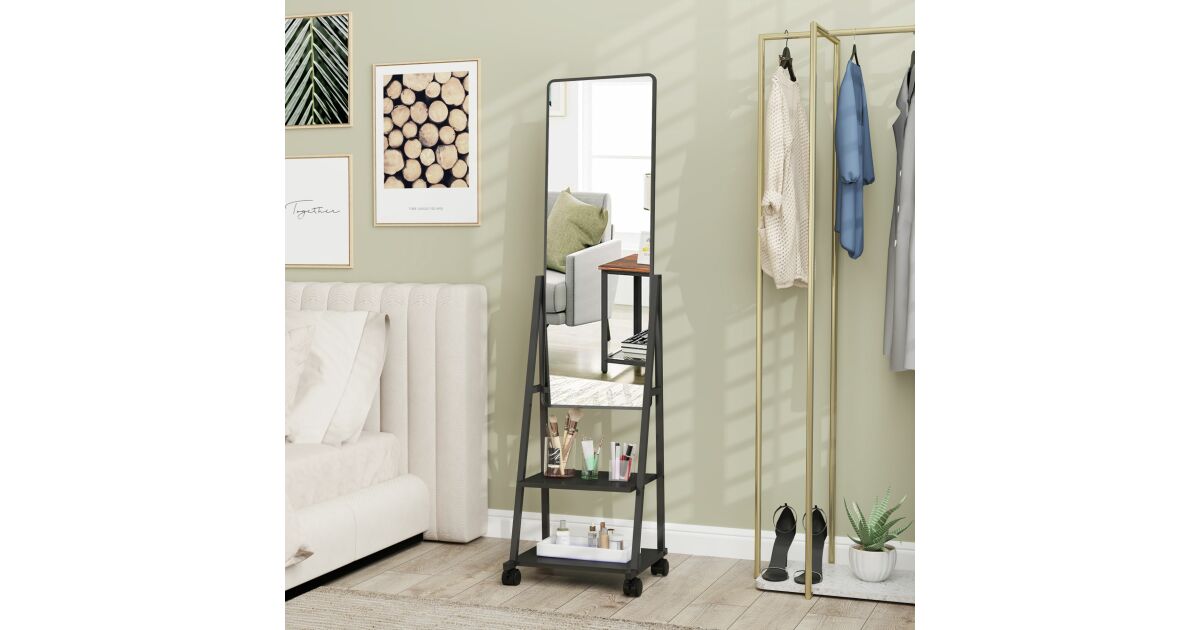 Oglindă pe picior HOMCOM cu rafturi și rotile - Perfectă pentru a-ți verifica ținuta completă! ✨