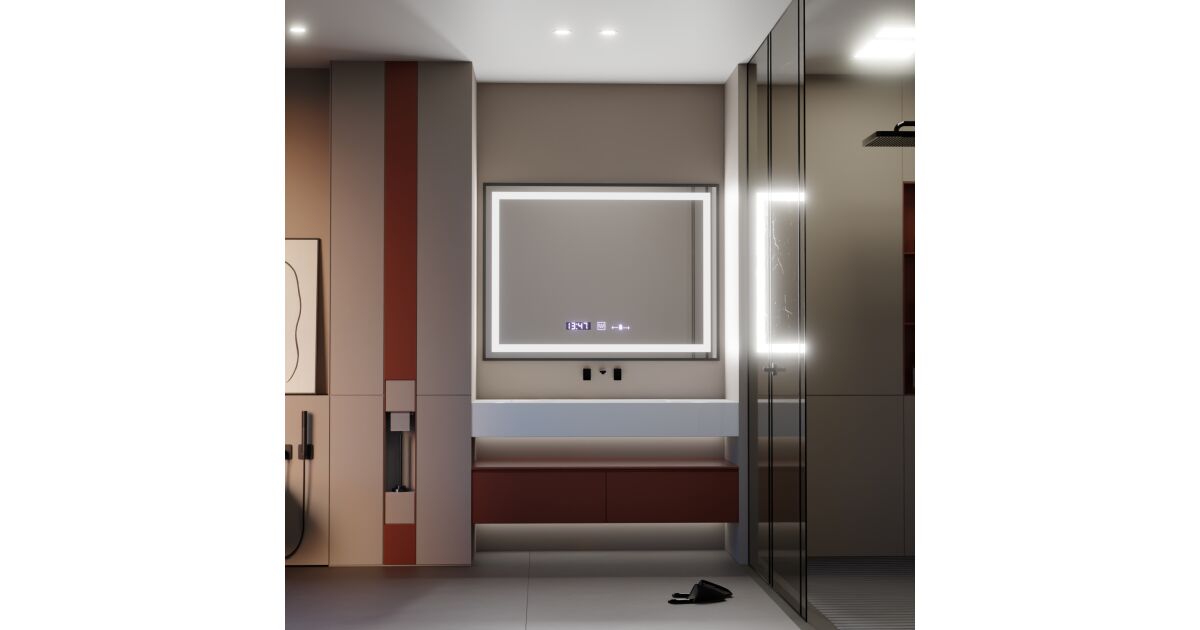 Oglinda LED Rectangulara, 80x60cm, Verite Majeste Noir Motion Glow Marcello, Sistem Dezaburire, Ceas & Termometru, Dimabila Descriere