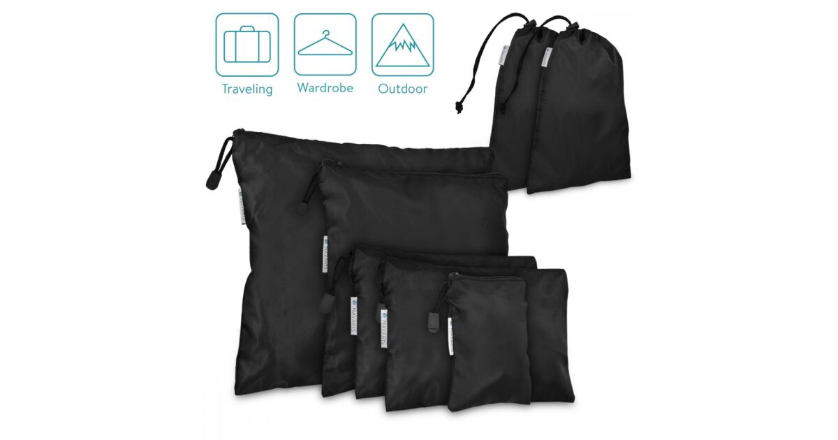 Set 7 huse de depozitare pentru calatorie Navaris, Negru, 42954 Descriere