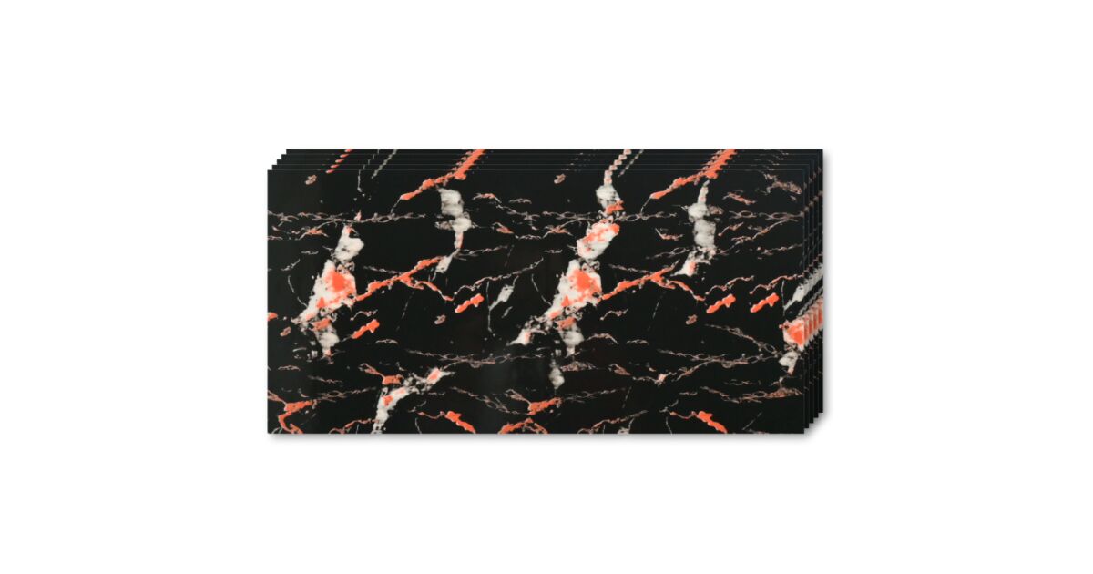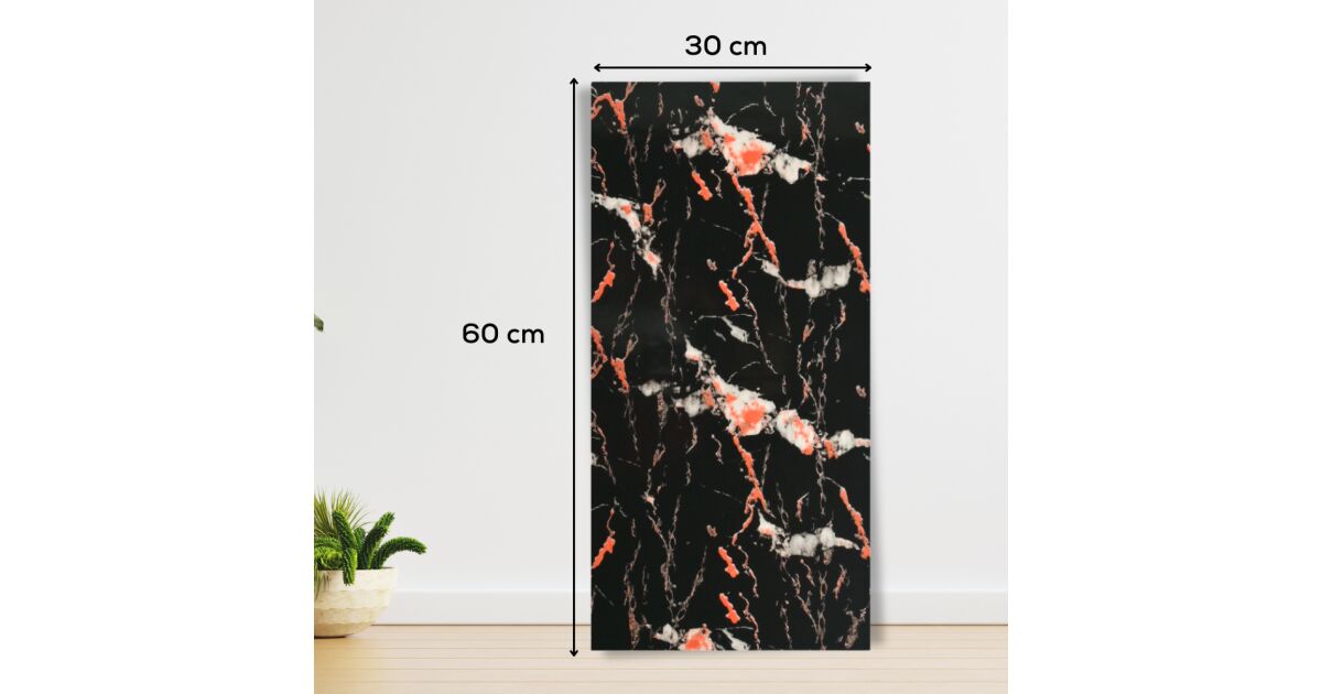 Set 40 x Placi imitatie marmura autoadezive, Rezistent la Apa, Design Modern, Usor de Montat, Adeziv Puternic, 2mm grosime, 7.2 mp suprafata acoperire, 30 x 60 cm, Negru/rosu Descriere