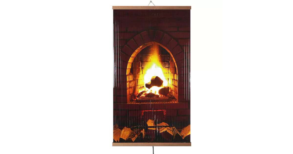 Panou cu infraroșu, panou de încălzire cu infraroșu decorativ, panou cu infraroșu mobil cu imagine șemineu, 500W - pliabil, 105 x 60 cm Descriere