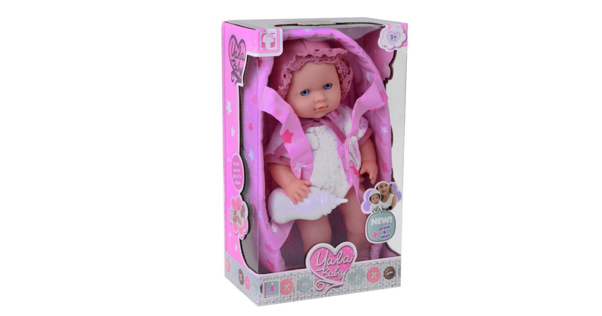 Acest set adorabil cu păpușă și portbebe este cadoul perfect pentru copiii mici cărora le place să aibă grijă de bebeluși. Păpușa drăguță, de 30 cm înălțime, vine cu ochi albaștri, o căciuliță roz și o rochiță albă cu iepurași. Cea mai mare distracție? Face pipi dacă o hrănești! Păpușa este făcută din cauciuc, cu membre mobile, astfel încât jocul devine și mai realist.